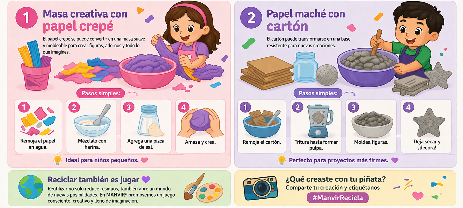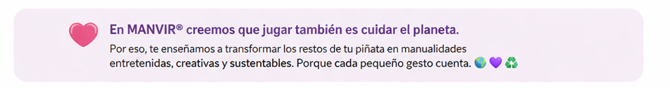En MANVIR® convertimos los residuos de tu piñata en nuevas aventuras creativas.